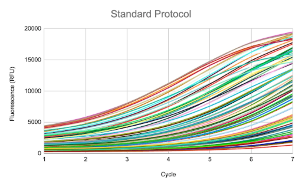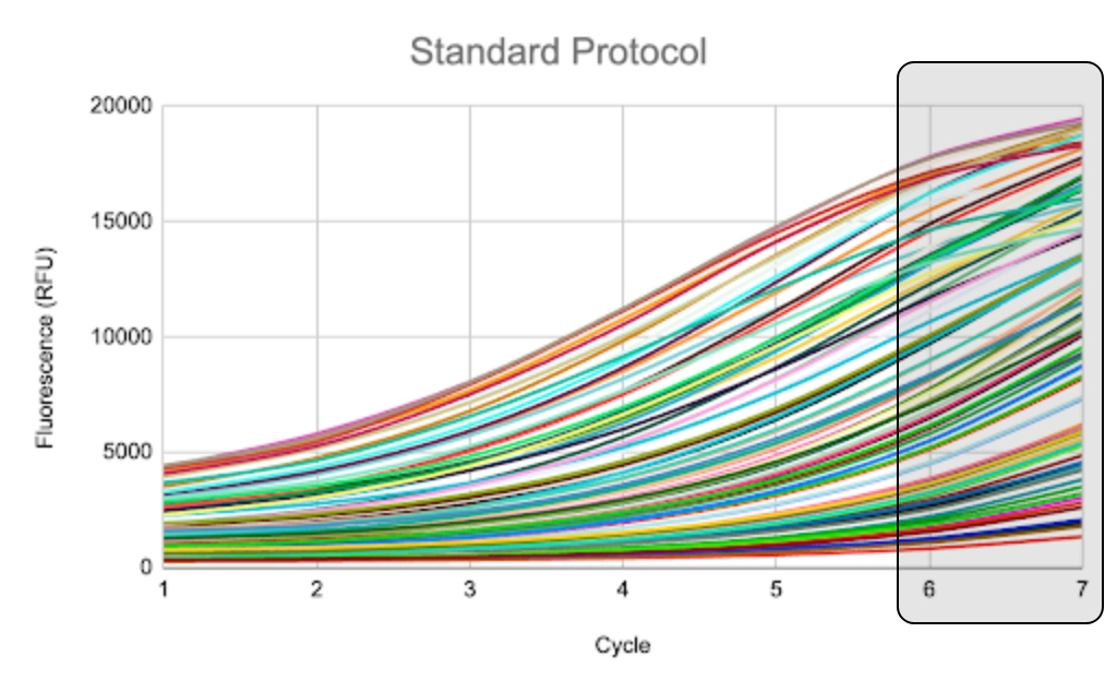 In full-length 16s sequencing, AutoNormalization with iconPCR entered a cold hold up to 9 cycles earlier (average), resulting in fewer artifacts.
